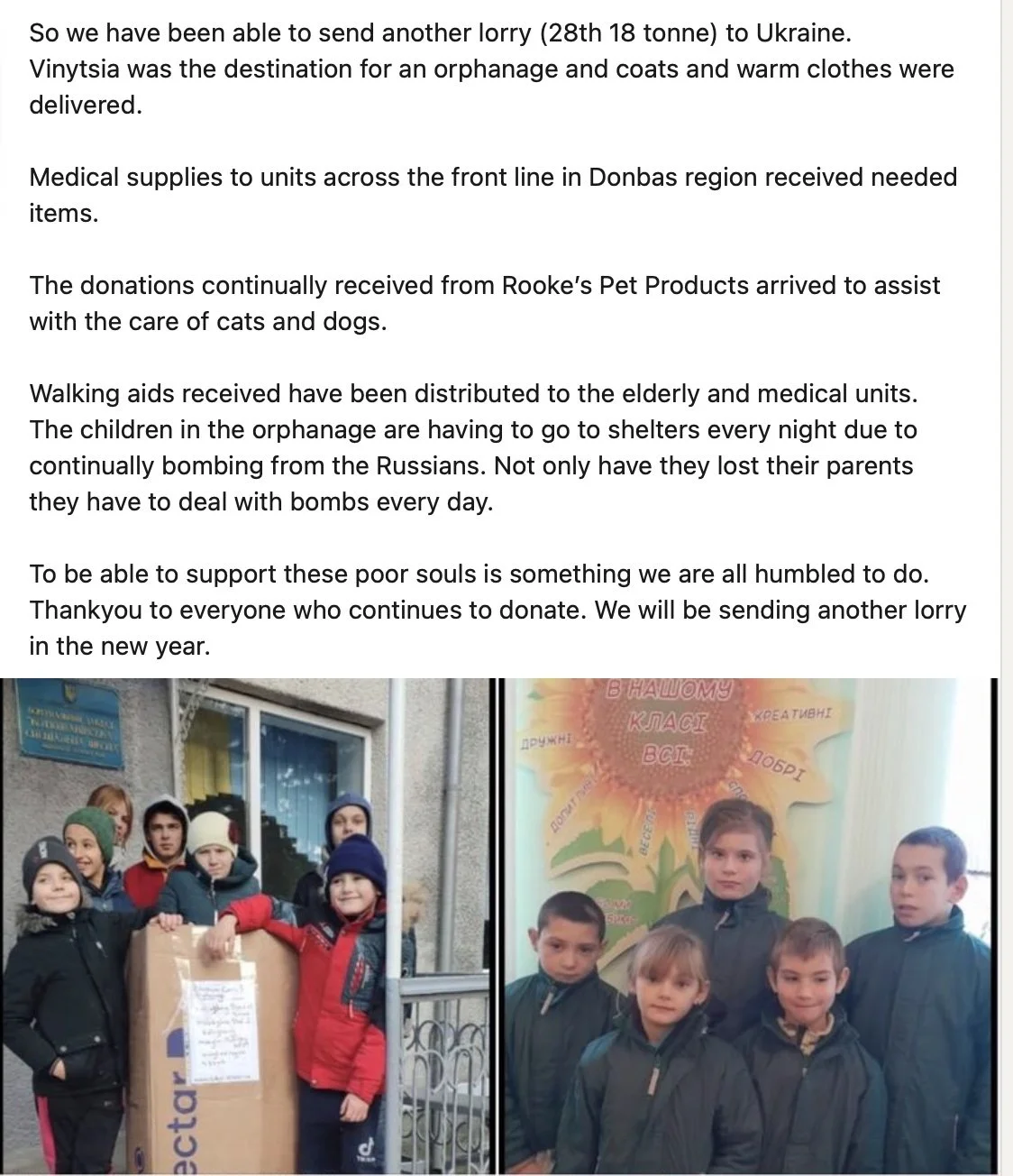 We have been inundated with kindness from so many people and organisations.