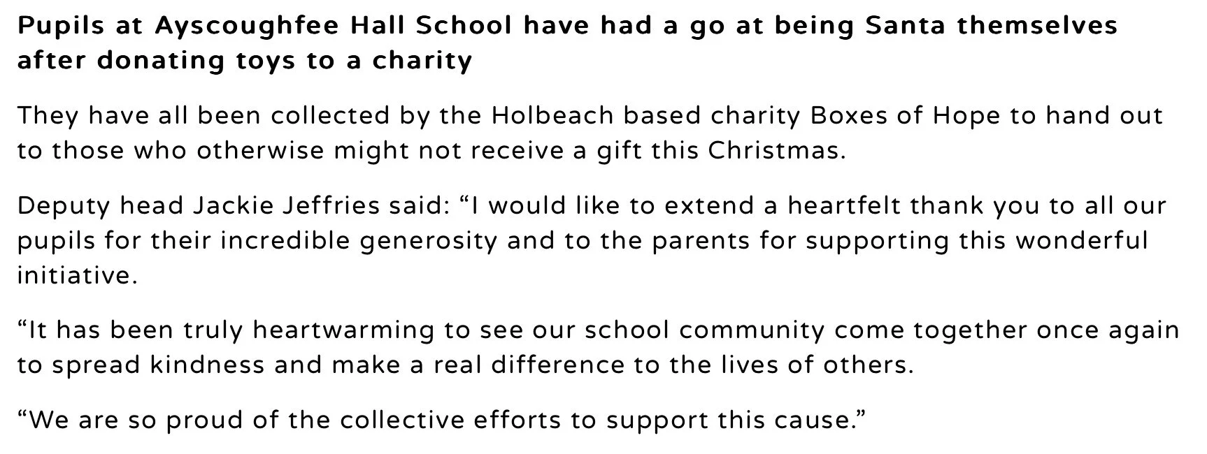 Littlebury Medical Centre and Dole instead of buying for each other the staff brought for some of our children...Amazing acts of thoughtfulness across the community. @Dempsey TKD.