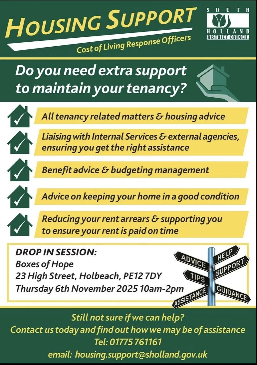 Cost of Living Support officer will be attending Boxes of Hope to discuss any housing issues.