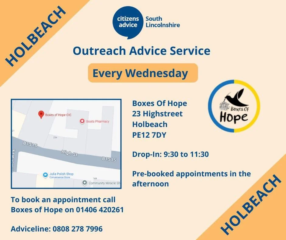 To book an appointment call Boxes of Hope on 01406 420261